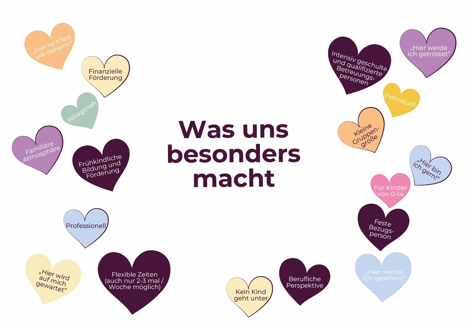 Liebevolle Begleitung, individuelle Förderung und eine vertrauensvolle Umgebung, in der sich Ihr Kind rundum wohlfühlen kann.